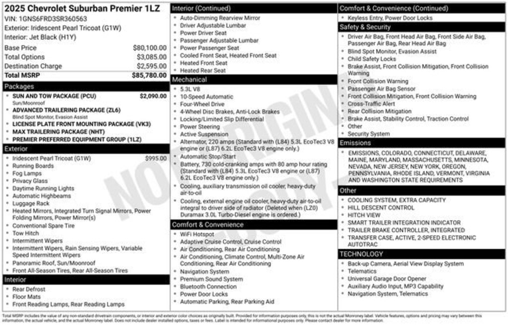 - Warranty: <<< Preliminary 2025 Warranty >>>