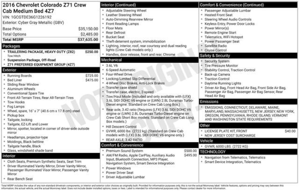 Cyber Gray Metallic 2016 Chevrolet Colorado Z71 4D Crew Cab 4WD 6-Speed Automatic 3.6L V6 DGI DOHC VVT
