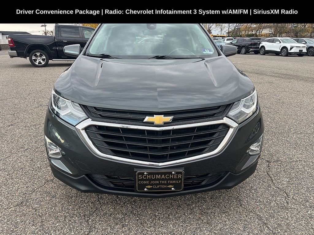 Schumacher Chevrolet of Clifton is excited to offer this wonderful-looking 2019 Chevrolet Equinox LT in Nightfall Gray Metallic Beautifully equipped with Driver Confidence Package (Lane Change Alert w/Side Blind Zone Alert, Outside Heated Power-Adjustable Mirrors, Rear Cross Traffic Alert, and Rear Park Assist w/Audible Warning), Driver Confidence Plus Package (3-Spoke Leather-Wrapped Steering Wheel, Lane Keep Assist w/Lane Departure Warning, Following Distance Indicator, Forward Collision Alert, Front Pedestrian Braking, IntelliBeam Auto High Beam Headlamp Control, and Low Speed Forward Automatic Braking), Driver Convenience Package (Dual Zone Automatic Climate Control, Heated Driver & Front Passenger Seats, Leather-Wrapped Shift Lever, Rear Power Liftgate, Remote Vehicle Starter System, and Universal Home Remote), Preferred Equipment Group 2FL, 2 Rear USB Charging-Only Ports, 2 USB Ports & Auxiliary Input Jack, 6 Speaker Audio System Feature, 8-Way Power Driver Seat Adjuster, Alloy wheels, Apple CarPlay/Android Auto, Bluetooth® For Phone, Heated door mirrors, Panic alarm, Power door mirrors, Power windows, Radio: Chevrolet Infotainment 3 System w/AM/FM, Remote keyless entry, SiriusXM Radio, 17 Aluminum Wheels, 2-Way Power Driver Lumbar Control Seat Adjuster, 3.50 Final Drive Axle Ratio, 4-Wheel Disc Brakes, 6 Speakers, ABS brakes, Air Conditioning, AM/FM radio: SiriusXM, Auto High-beam Headlights, Brake assist, Bumpers: body-color, Compass, Delay-off headlights, Driver door bin, Driver vanity mirror, Dual front impact airbags, Dual front side impact airbags, Electronic Stability Control, Emergency communication system: OnStar and Chevrolet connected services capable, Four wheel independent suspension, Front anti-roll bar, Front Bucket Seats, Front Center Armrest, Front Passenger 4-Way Manual Seat Adjuster, Front reading lights, Fully automatic headlights, High-Intensity Discharge Headlights, Illuminated entry, Low tire pressure warning, Occupant sensing airbag, Outside temperature display, Overhead airbag, Overhead console, Passenger door bin, Passenger vanity mirror, Power driver seat, Power steering, Premium audio system: Chevrolet MyLink, Premium Cloth Seat Trim, Radio data system, Rear anti-roll bar, Rear reading lights, Rear seat center armrest, Rear window defroster, Rear window wiper, Security system, Speed control, Speed-sensing steering, Split folding rear seat, Spoiler, Steering wheel mounted audio controls, Tachometer, Telescoping steering wheel, Tilt steering wheel, Traction control, Trip computer, Turn signal indicator mirrors, and Variably intermittent wipers!