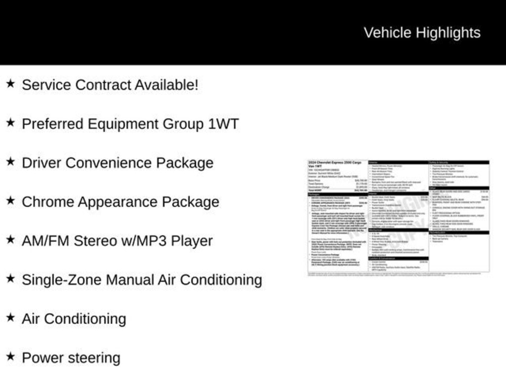 Whether you're hauling heavy loads, transporting equipment, or navigating tight job sites, the 2024 Chevrolet Express 2500 Work Van Cargo is the versatile and capable partner your business needs. Experience the power, functionality, and premium features that make this van the ideal choice for your commercial needs. Visit our showroom today and let us demonstrate how this exceptional vehicle can elevate your operations.