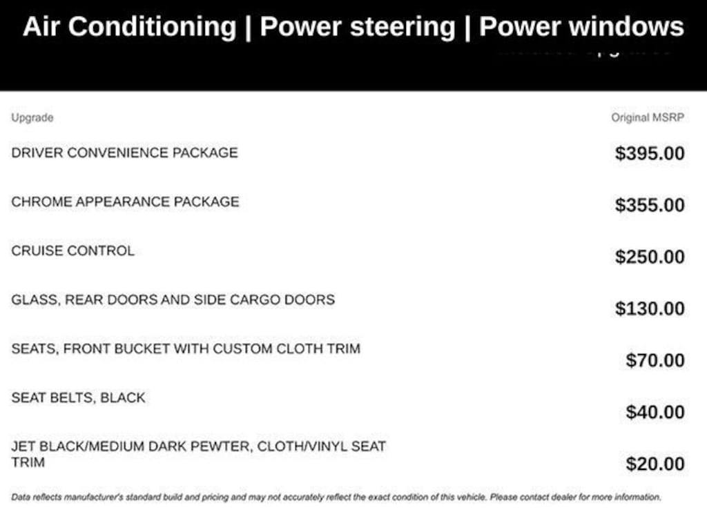 The thoughtfully designed cabin offers a host of premium features, including a Driver Convenience Package with tilt-wheel and cruise control, as well as a Chrome Appearance Package that adds a touch of style to the exterior. The Jet Black/Medium Dark Pewter cloth and vinyl seating provides both comfort and durability, while the rear and side cargo door glass ensures excellent visibility and security.