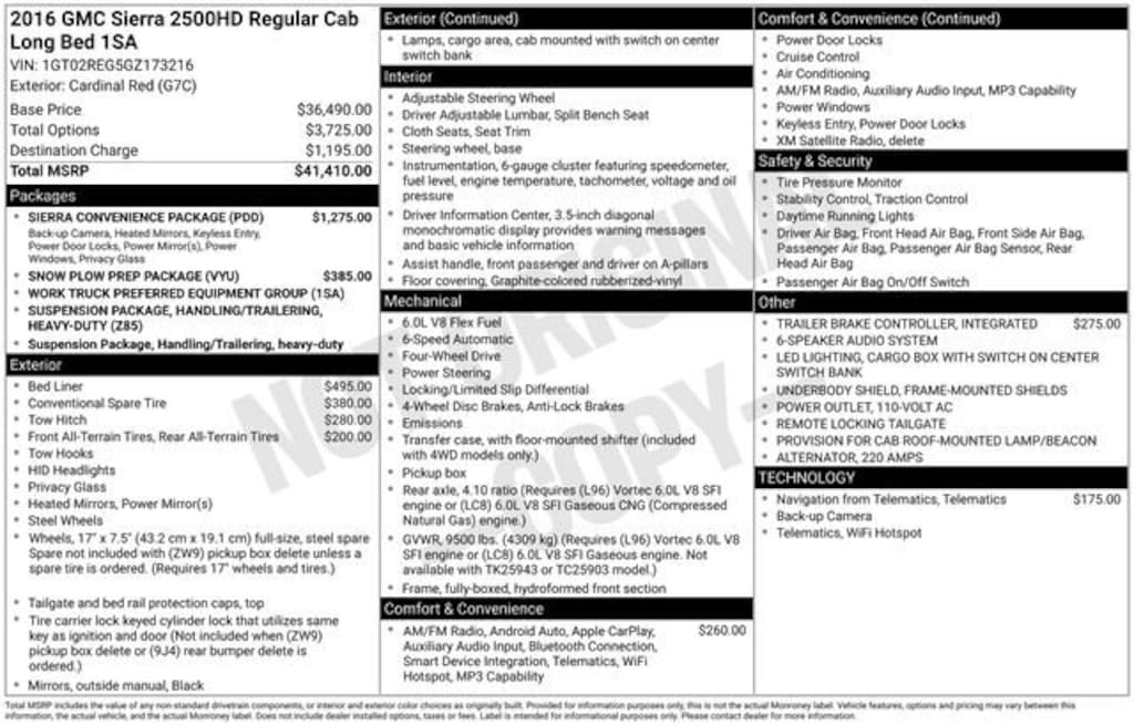 Cardinal Red 2016 GMC Sierra 2500HD 2D Standard Cab 4WD 6-Speed Automatic HD Electronic with Overdrive 6.0L 8-Cylinder SFI Flex Fuel OHV
